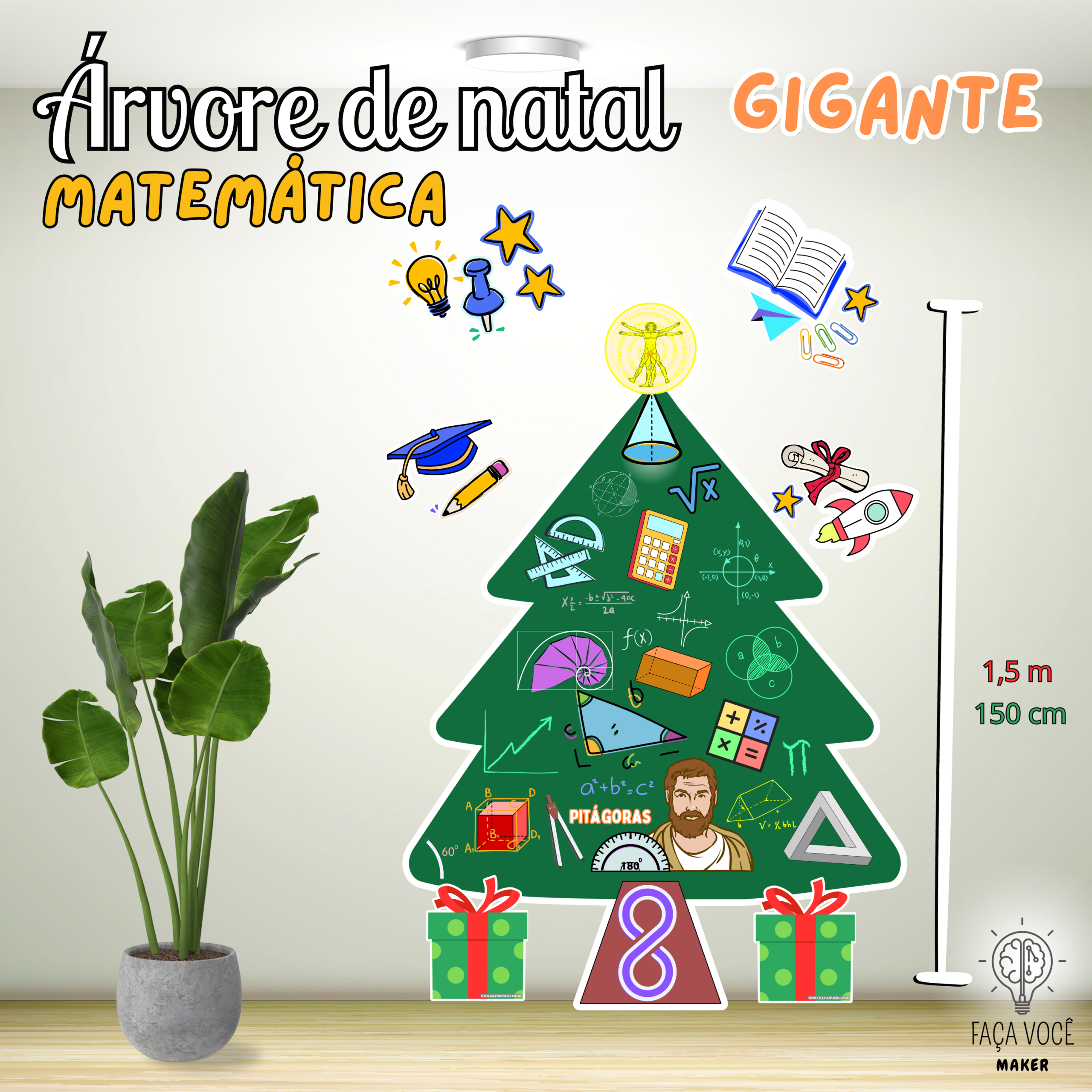 Àrvore de Natal Gigante com tema de MATEMÁTICA contendo cerca de 1,5 metros de altura, ideal para colar na parede.