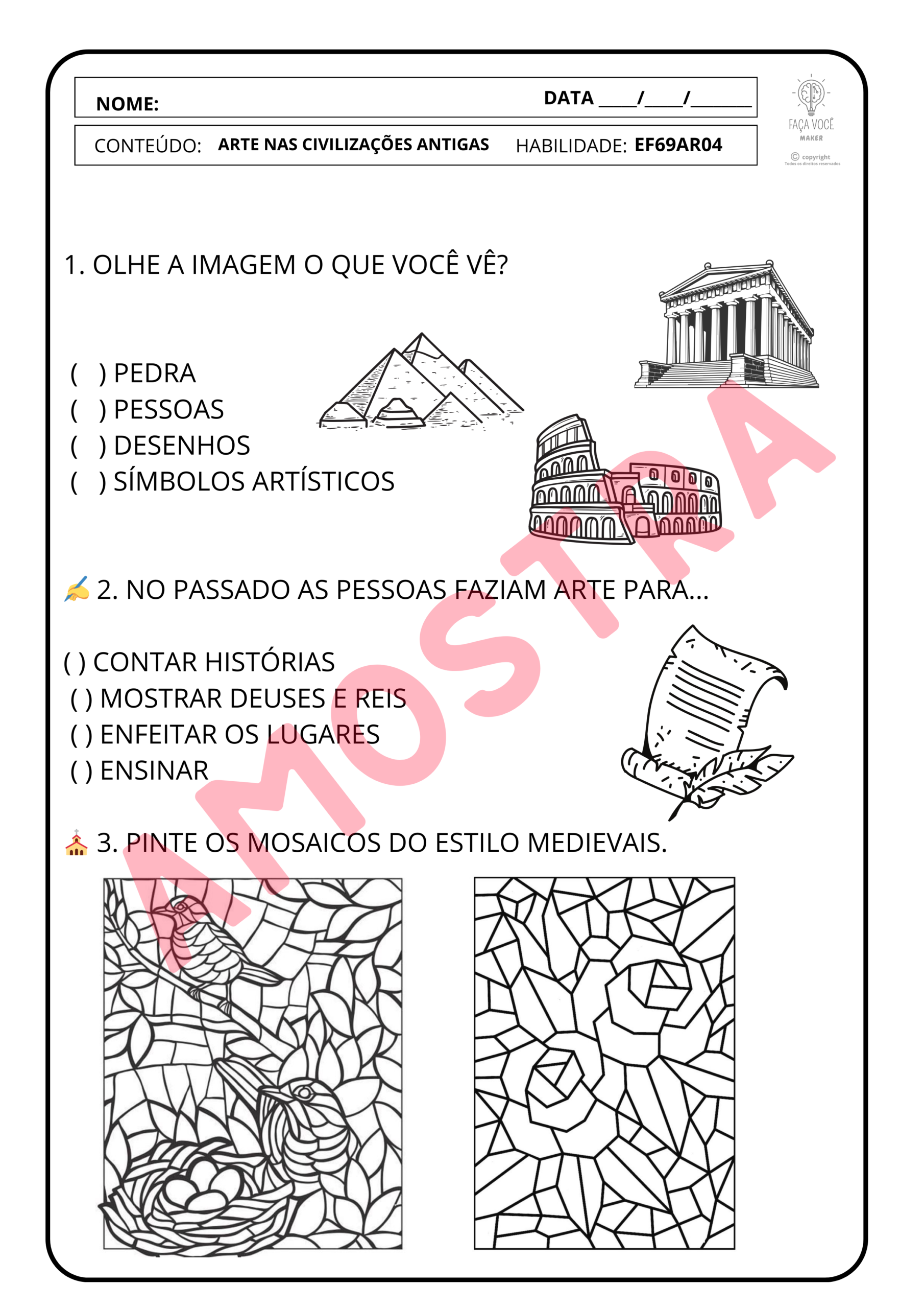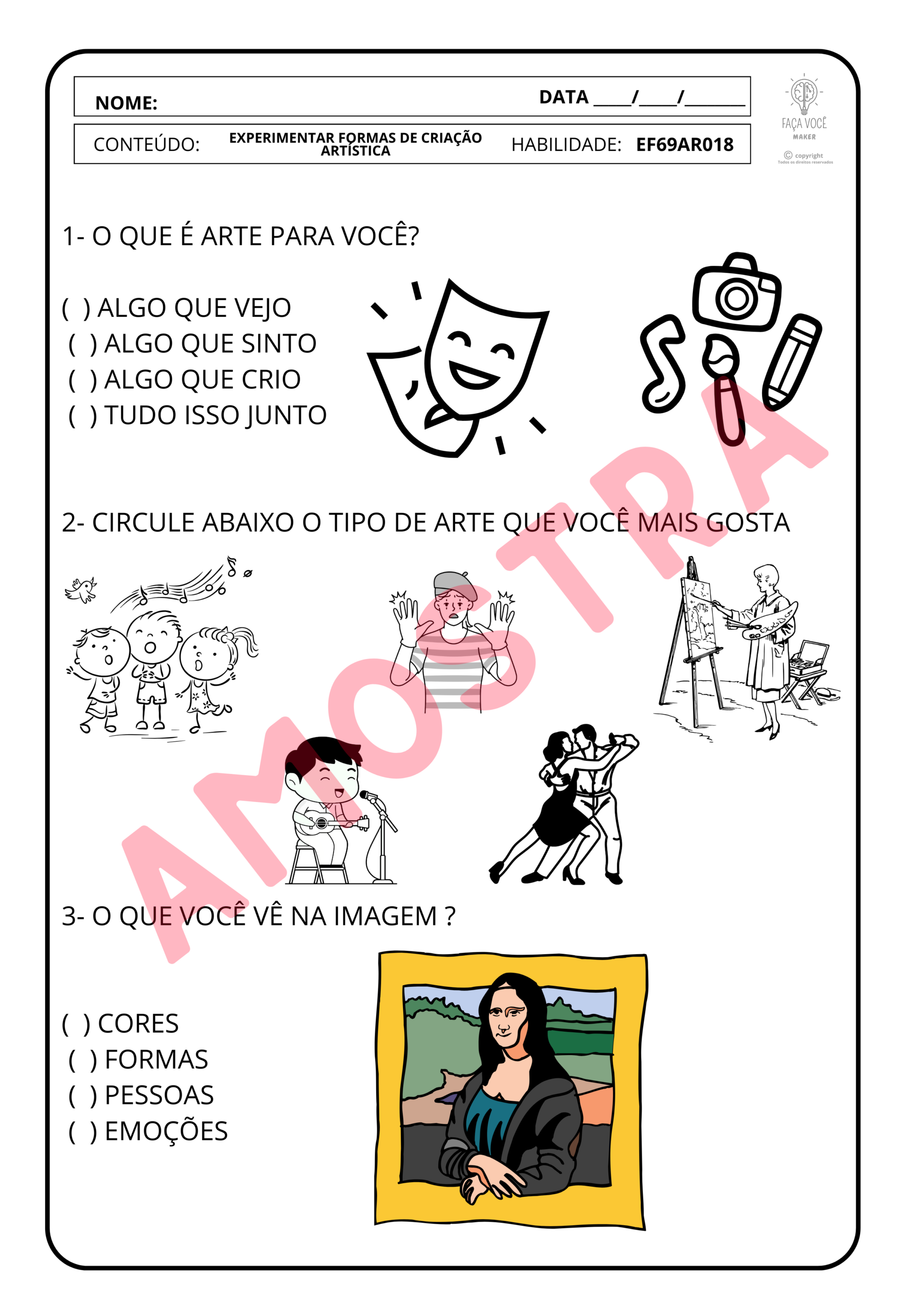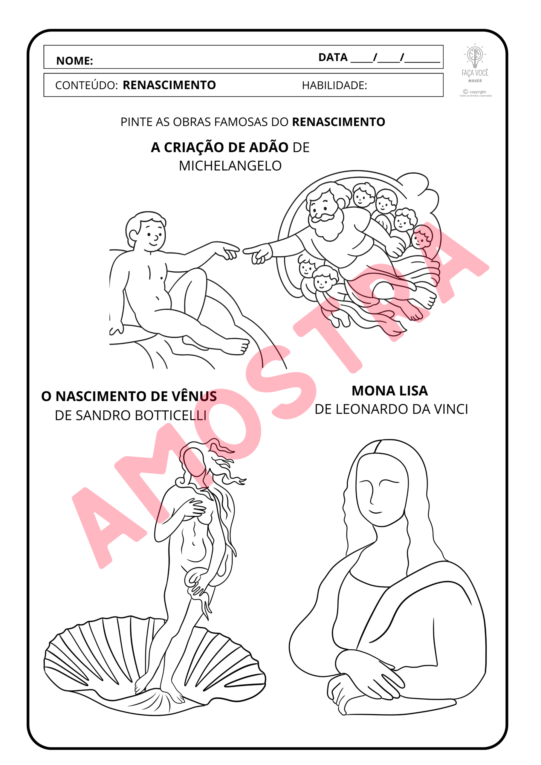 – As atividades são protegidas pela lei 9.610/98- Lei de direitos autorais. Não sendo permitido, após a compra, o compartilhamento dos PDFs em grupos de redes sociais e/ou similares, comercialização ou ceder o material físico para cópias, seu uso é individual ou para fins pedagógicos ( de forma presencial ou remota).