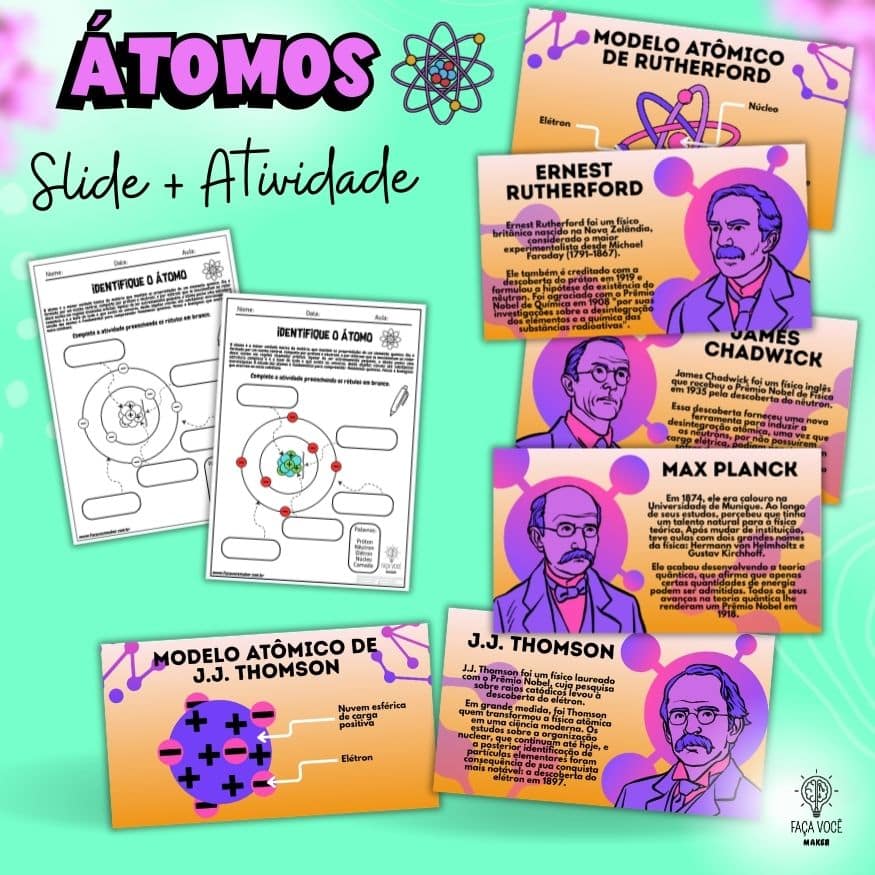 Recurso lúdico para abordar a composição atômica e Slide contendo os principais modelos atômicos e sua história.