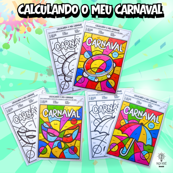 Atividade  contendo as quatro operações matemáticas formando mosaicos com a temática de Carnaval