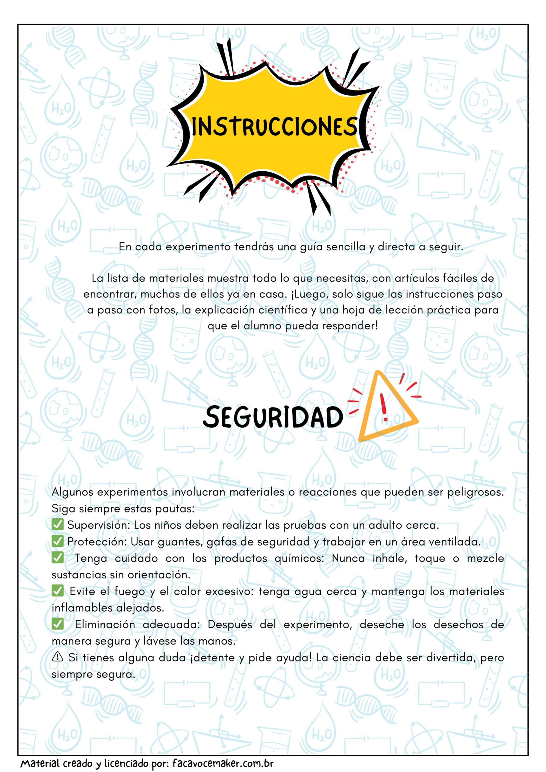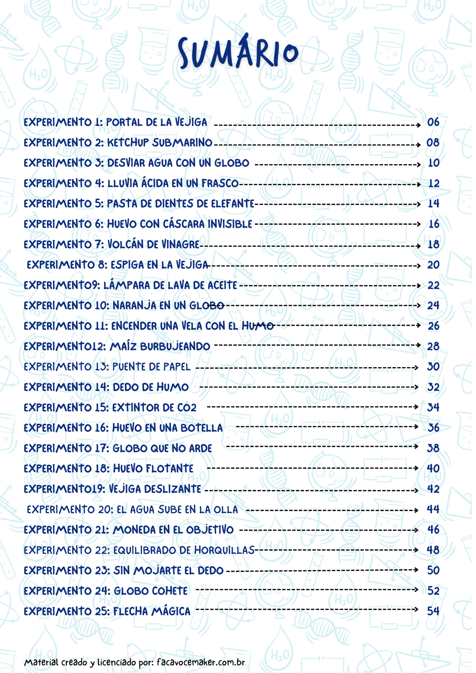 Más de 50 experimentos increíbles, utilizando materiales sencillos que, la mayoría de las veces, ya tienes en casa. Todas las pruebas fueron elegidas con una guía sencilla paso a paso, explicaciones científicas y un guión con una actividad de consolidación para el estudiante. Ideal para clases de ciencias prácticas o una idea para una feria de ciencias.