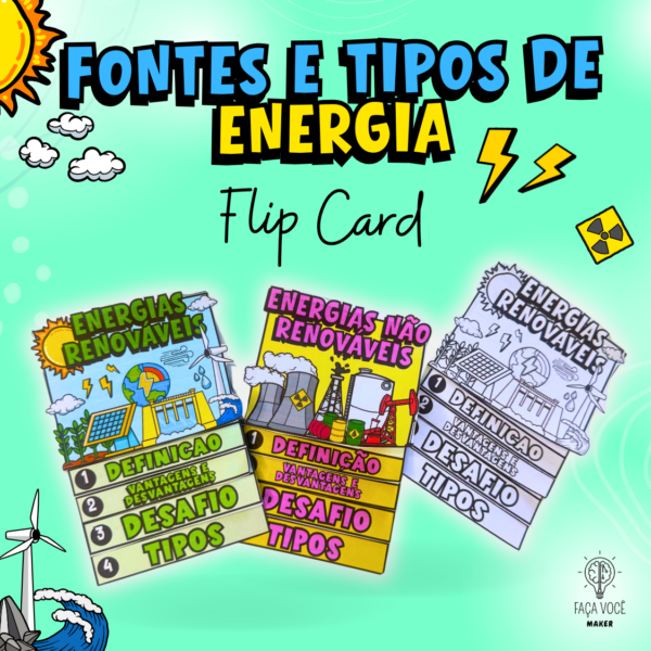 Recurso lúdico em formato Flip Card  para estudo das principais caracterisiticas gerais e específicas sobre as fontes de energia :Renováveis e Nã0-renováveis e seus respectivos representantes.