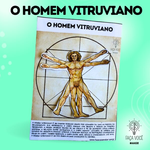 O Homem Vitruviano de Leonardo da Vinci permite discutir o Renascimento, valorização do corpo humano e a ciência na arte.