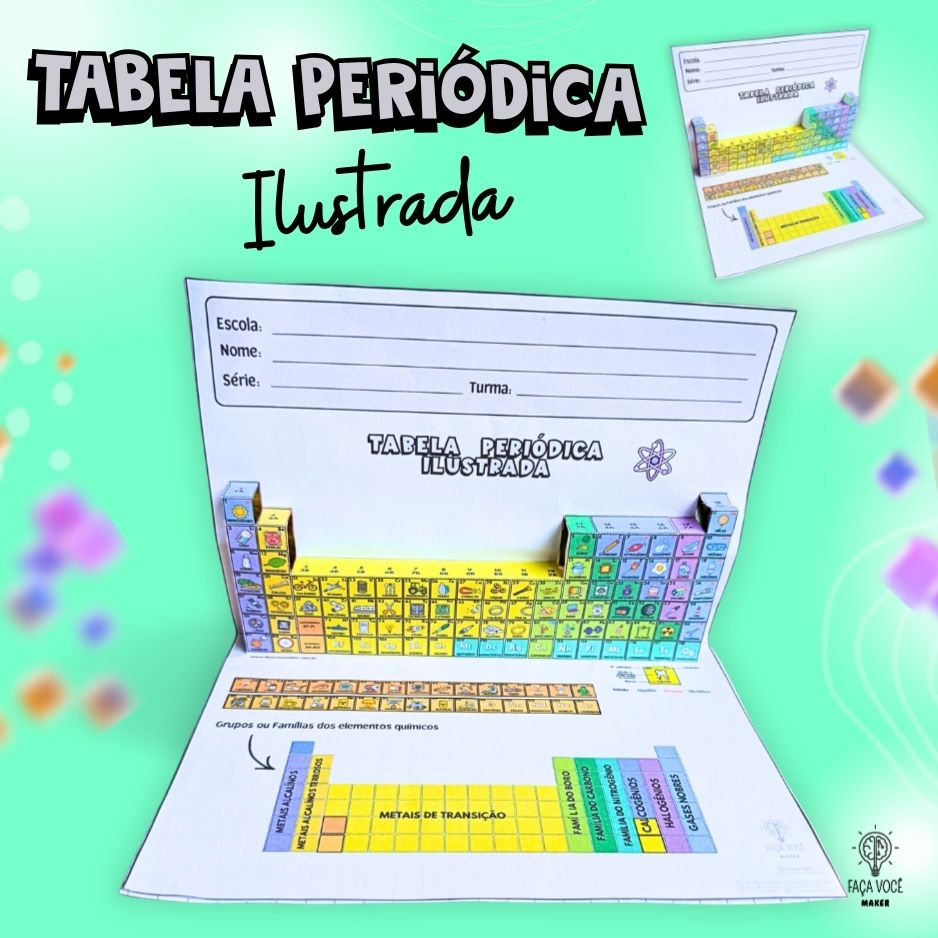 A Tabela Periódica ilustrada em 3D para colar no caderno.